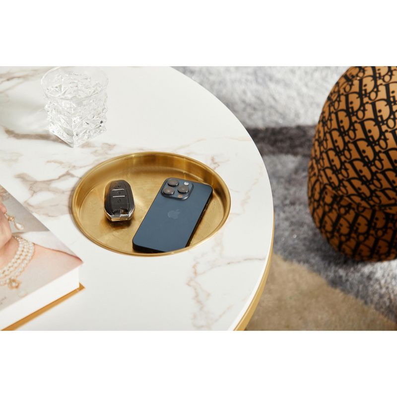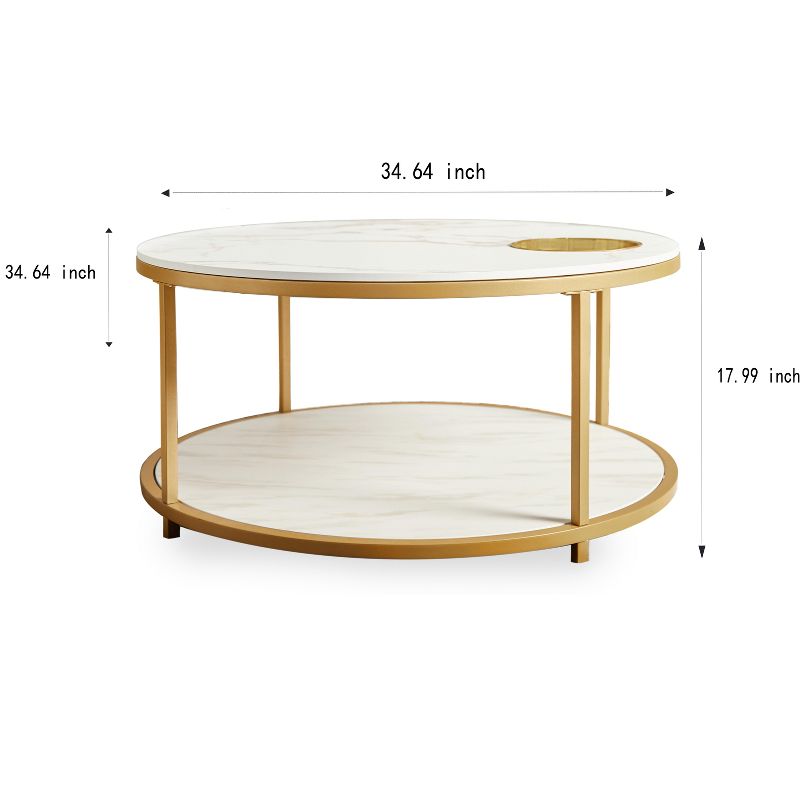 ORRD 34.64" White & Gold Round Coffee Table - 2-Tier Storage Shelf & Tray Modern Living Room Furniture
