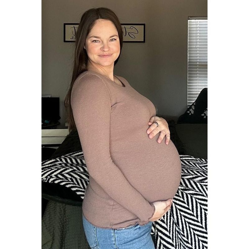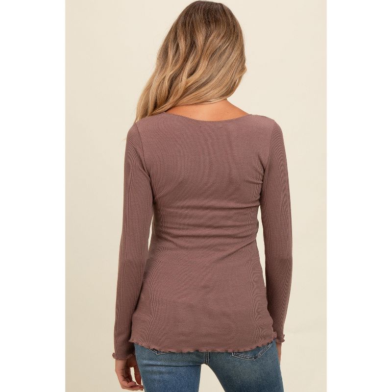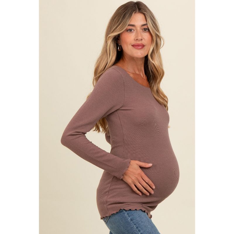 PinkBlush Brown Ribbed Knit Long Sleeve Lettuce Hem Maternity Top Brown X Large