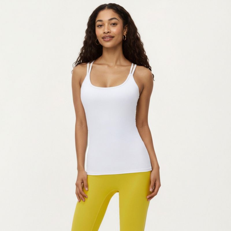 Anna-Kaci Active Women's Fitted Athletic Tank Top with Double Strap Back and Smooth Stretch Knit Fabric - Small, White