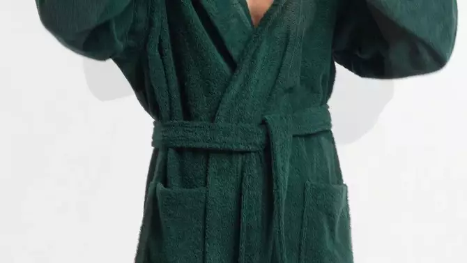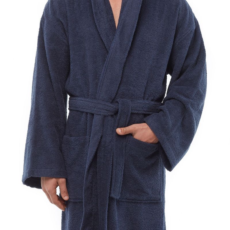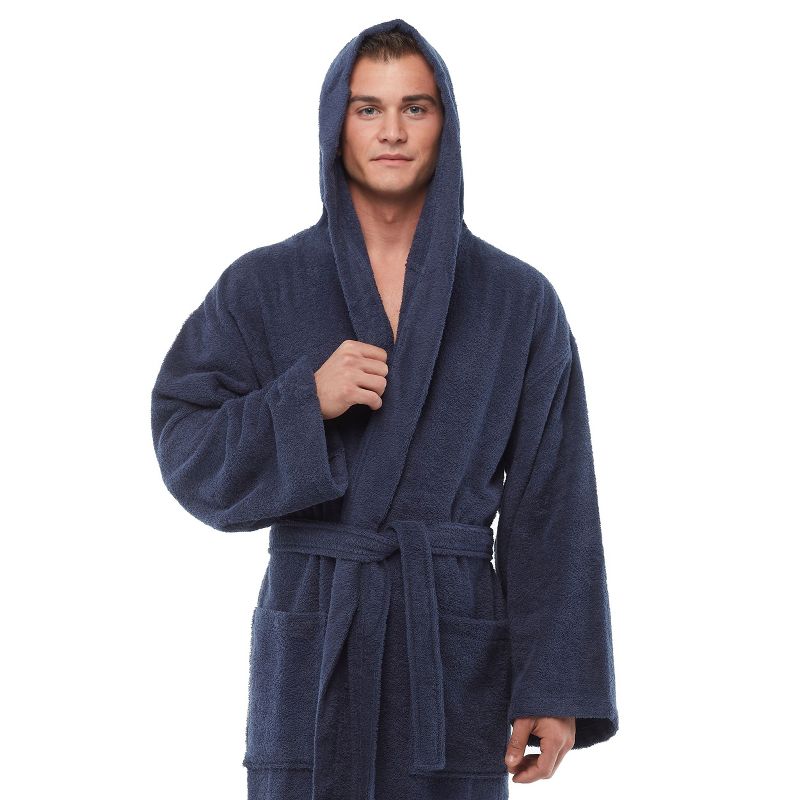 Arus Men's Turkish Terry Cotton Hooded Robe, Full Length Long Bathrobe with Hood , Dark Blue , Small/Medium