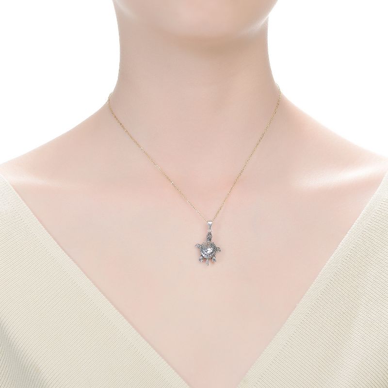 Guili Sterling Silver White Gold Plated Turtle Pendant Necklace, Featuring Clear Cubic Zirconia Sparkle, for a Chic and Nature-Inspired Look