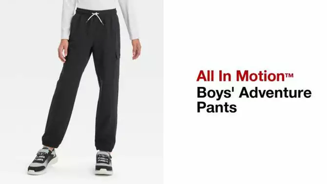 Boys' Adventure Pants - All In Motion™ Black L: Recycled Polyester, Spandex, Water Repellent, Cargo Pockets, Drawstring Waist