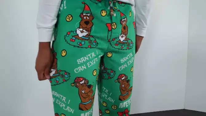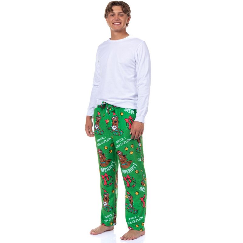Intimo Scooby-Doo Pajamas Men's Santa I Can Explain Fleece Lounge PJ Pants (M) Green