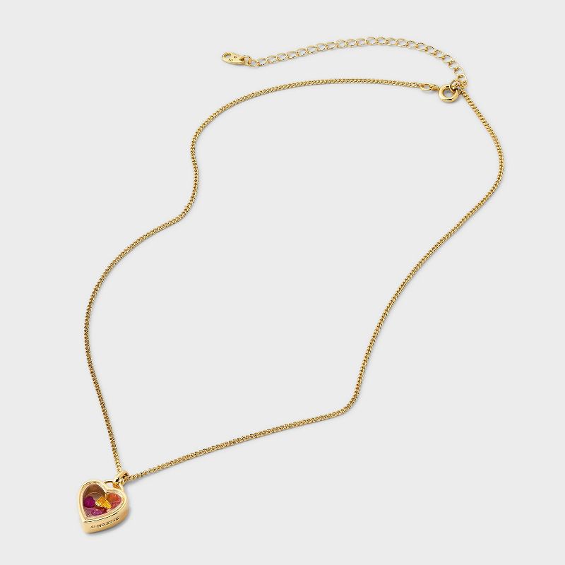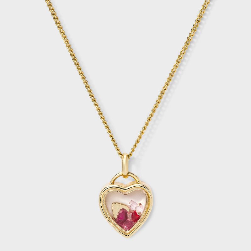 14K Gold Dipped Cubic Zirconia Valentines Heart Shaker Pendant Necklace - A New Day™ Gold