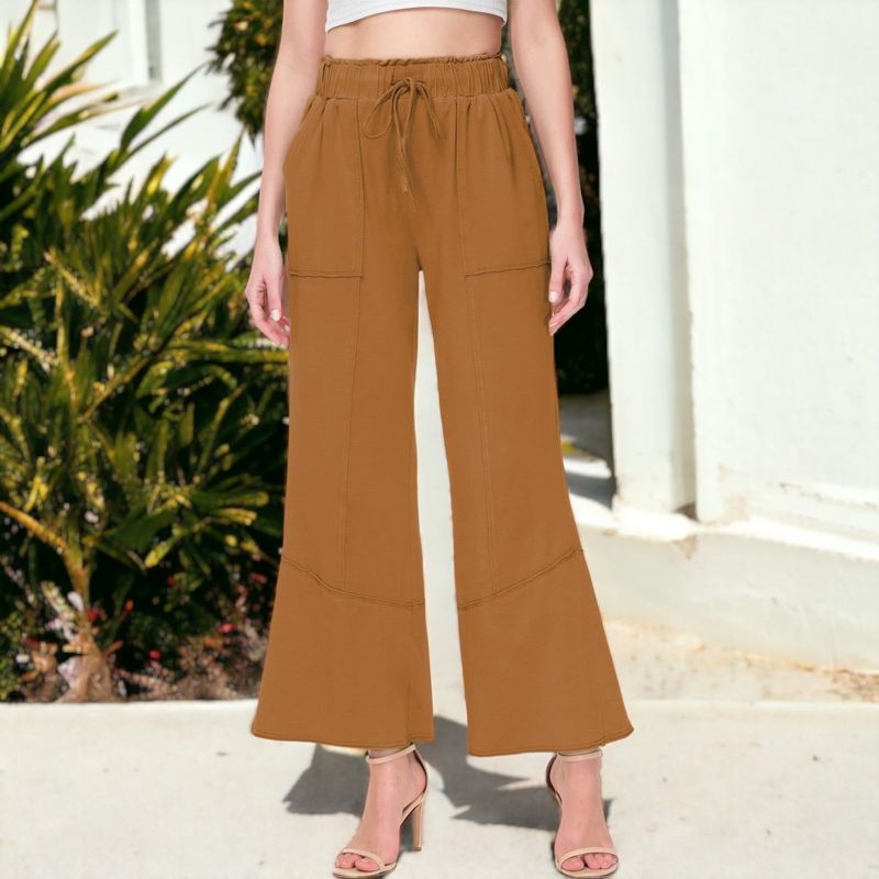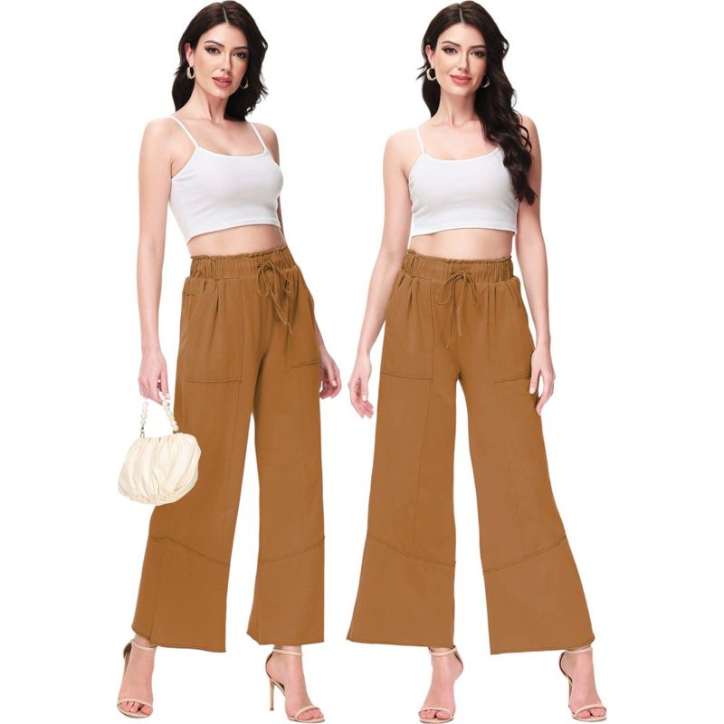 Anna-Kaci Women's High Waist Drawstring Long Pants Relaxed Loose Pants with Pockets - X Large, Brown