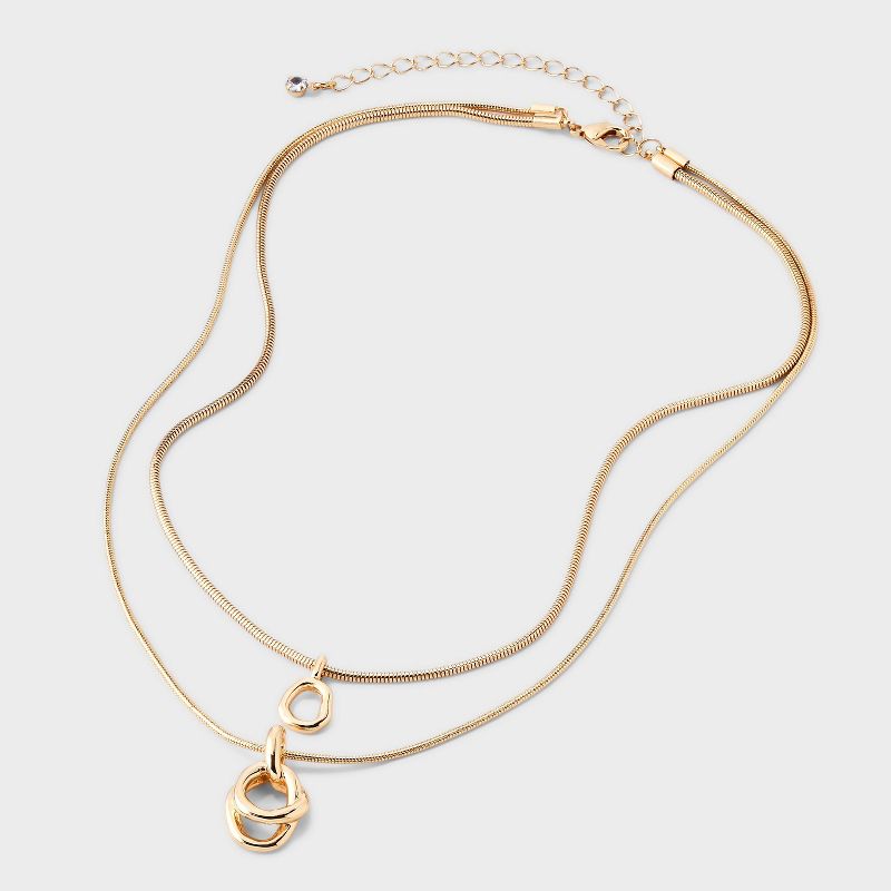 Interlock Circle Pendant Multi-Strand Necklace - A New Day™ Gold: Nickel-Free Metal, Lobster Claw Clasp