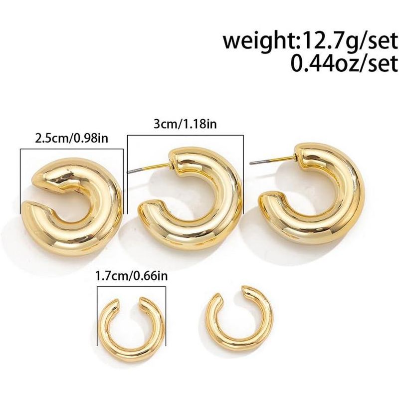 5-Piece Non-Piercing Ear Cuff Set | Chunky Gold & Silver Huggie Hoop Statement Jewelry Silver One Size