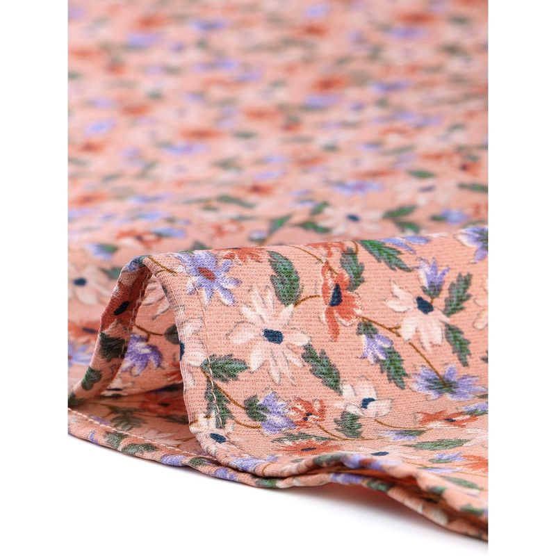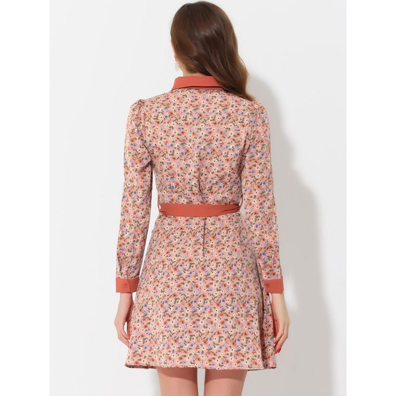 Allegra K Women's Contrast Collar Button Front Vintage Long Sleeve Floral Shirt Dresses Pink Large