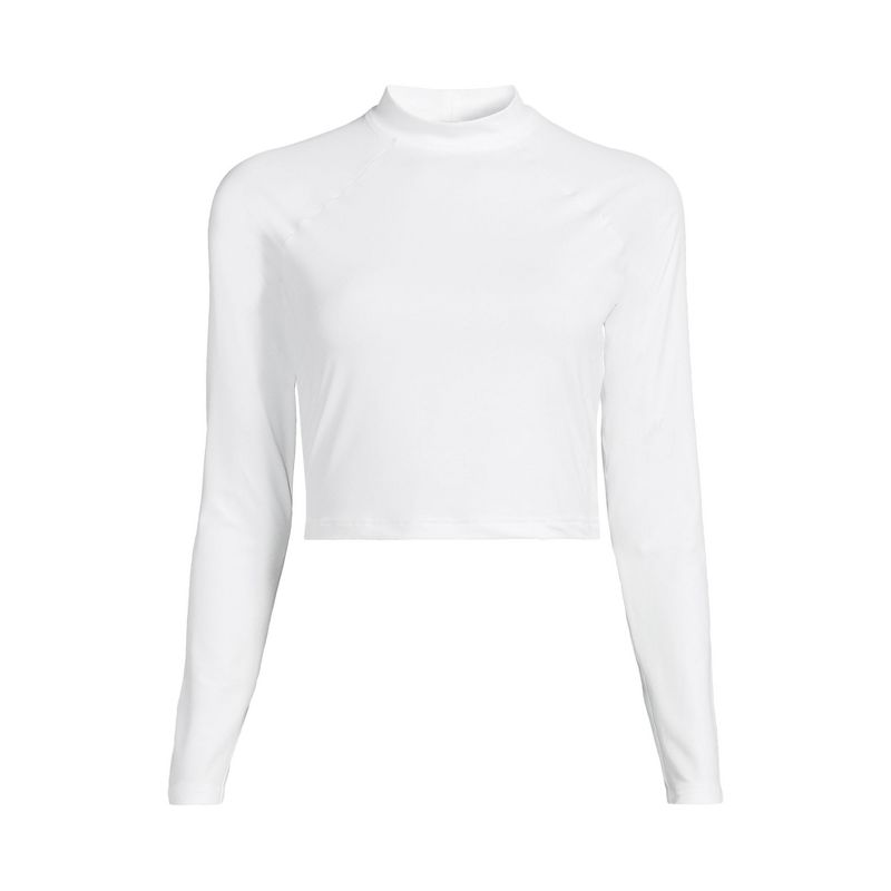 Lands' End Women's Petite SunShade UPF 50 Long Sleeve Cropped Rash Guard - X-Small - White