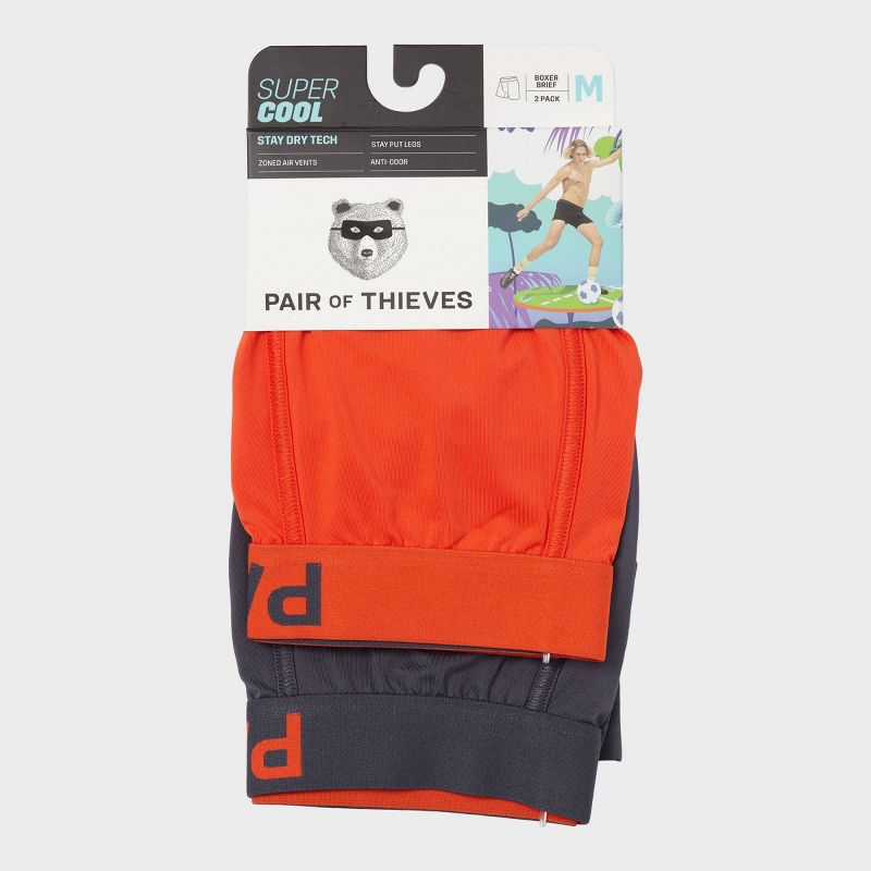 Pair of Thieves Men's 2pk Sport Boxer Briefs - Tomato Red L: Tagless, Mesh Fabric, Flat Seams, Elastic Waistband