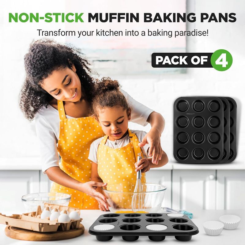 NutriChef 4-Piece 12-Cup Non-Stick Muffin Baking Pans with Parchment Liners NC2TRCP4X2 - Black