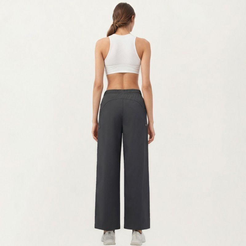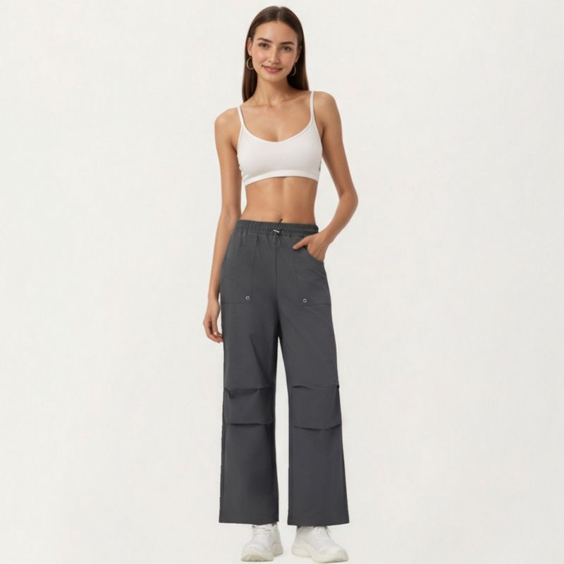 Anna-Kaci Active Women's High Waist Wide Leg Cargo Sweatpants with Adjustable Drawstring and Utility Pocket Design - X Large, Gray