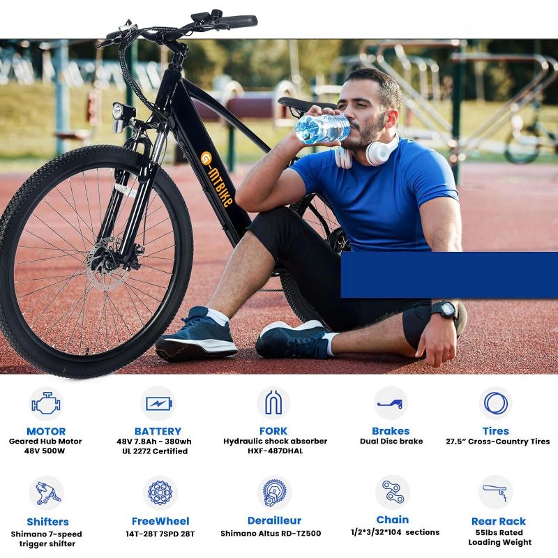 Electric Bike for Adults,500W 27.5" Tires,7-Speed Gear System,50 Miles Range Mountain E-Bike for Commuting and Adventure