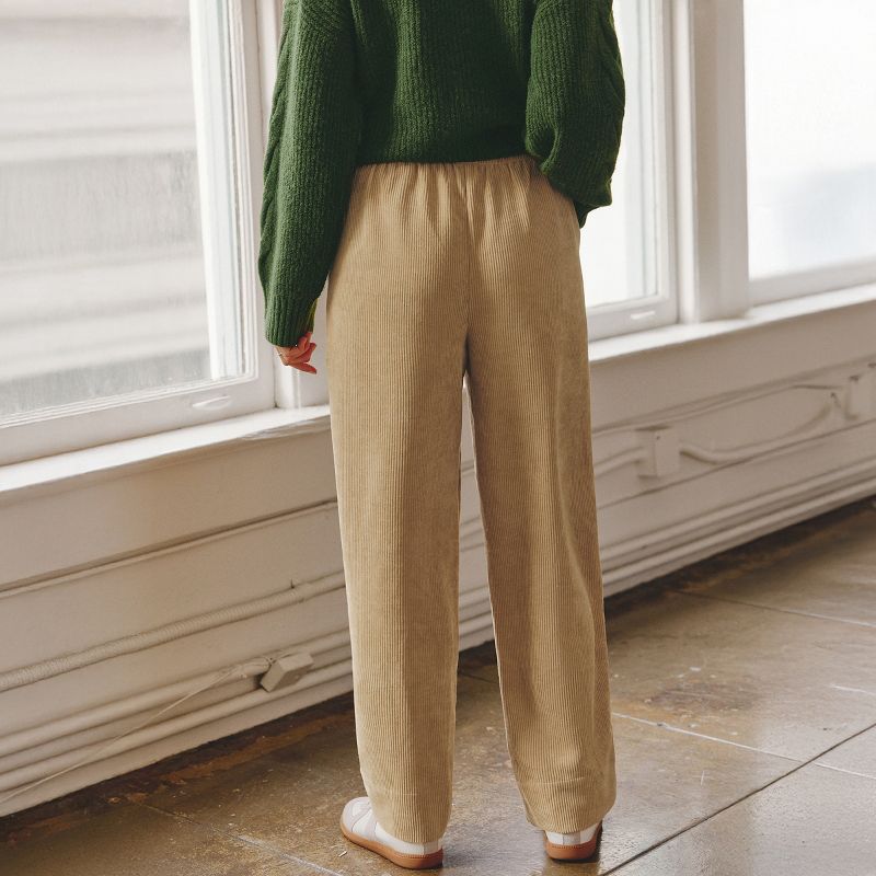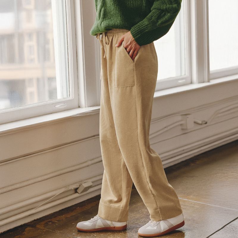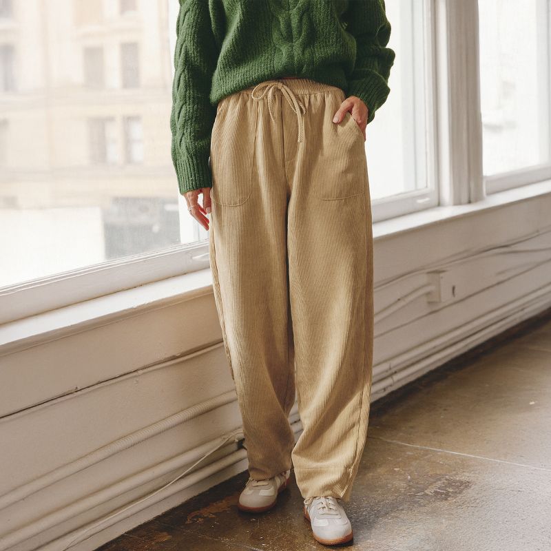 Women's Vintage-Inspired Corduroy Wide-Leg Pants with Drawstring - Cupshe-M-Beige