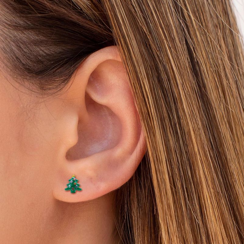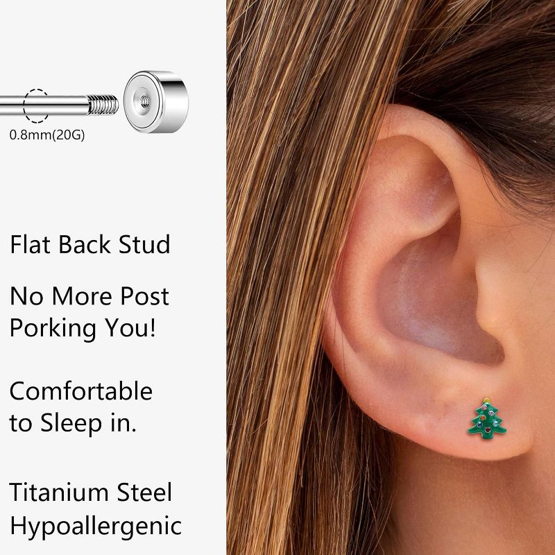 Titanium Stud Earrings - Cute Christmas Earrings for Women with Flat Back Christmas Tree Earrings One Size
