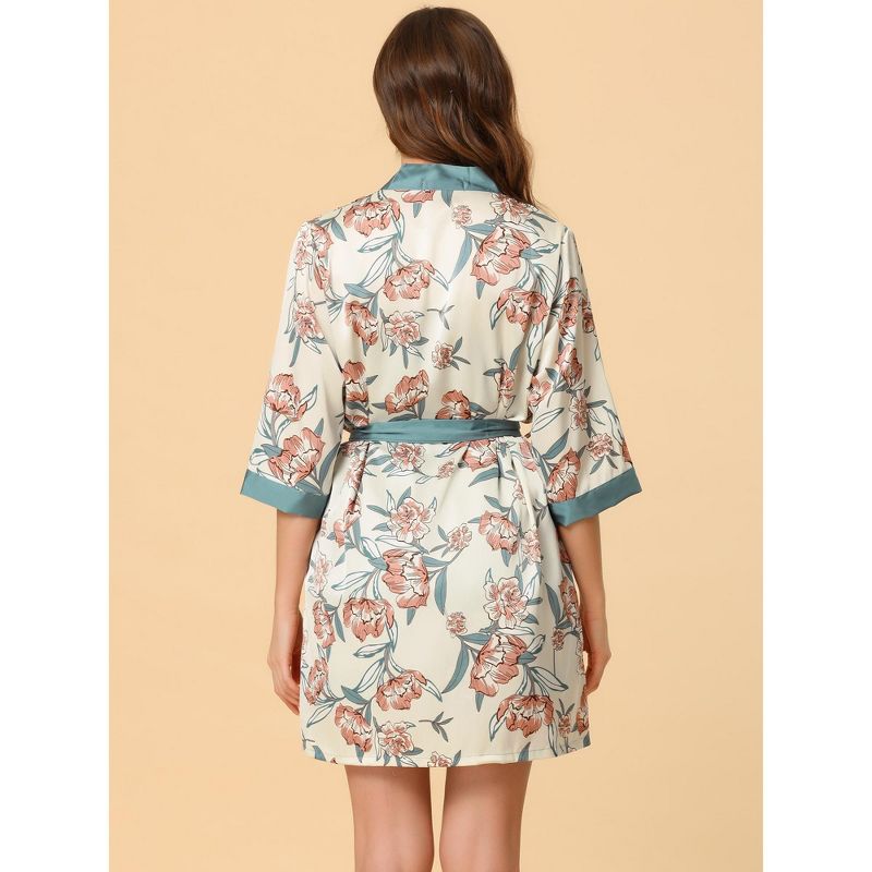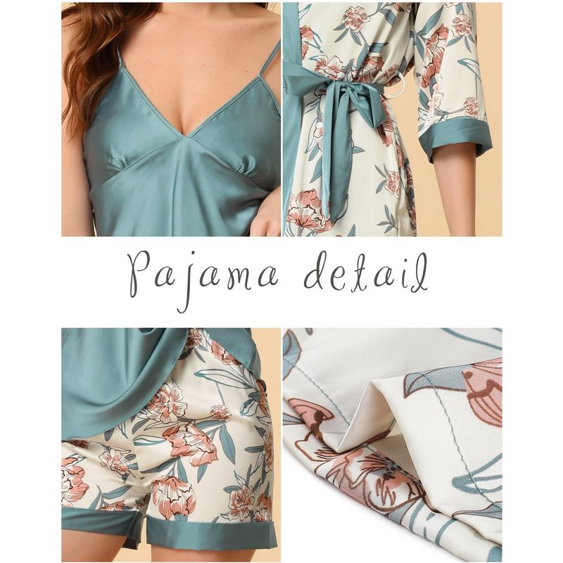 cheibear Womens Satin Floral Lounge Cami Nightgown Sleepwear 4pcs Pajama Sets Blue Small