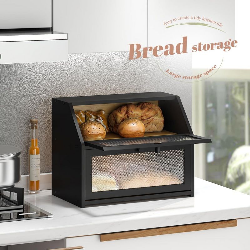 MOEPISY Double Layer Bread Box, Large Capacity Storage Container for Kitchen Countertop (Black)