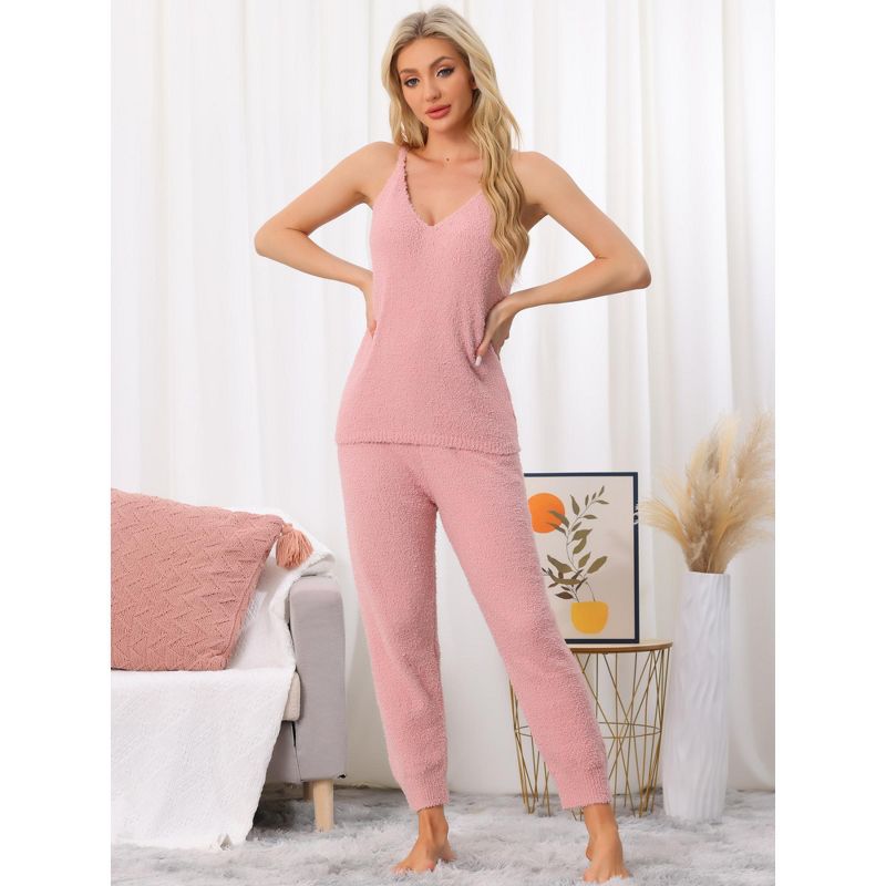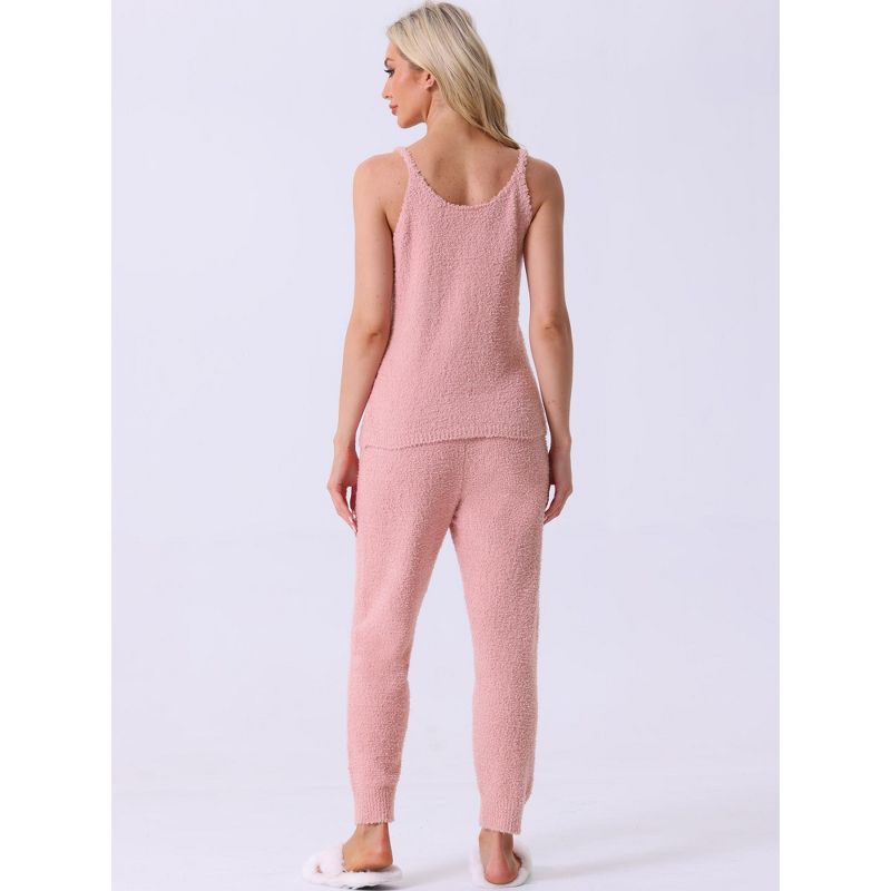 cheibear Women's Fluffy Fleece Thick Plush Sleeveless Cami Joggers 2 Piece Pajama Set Pink Small