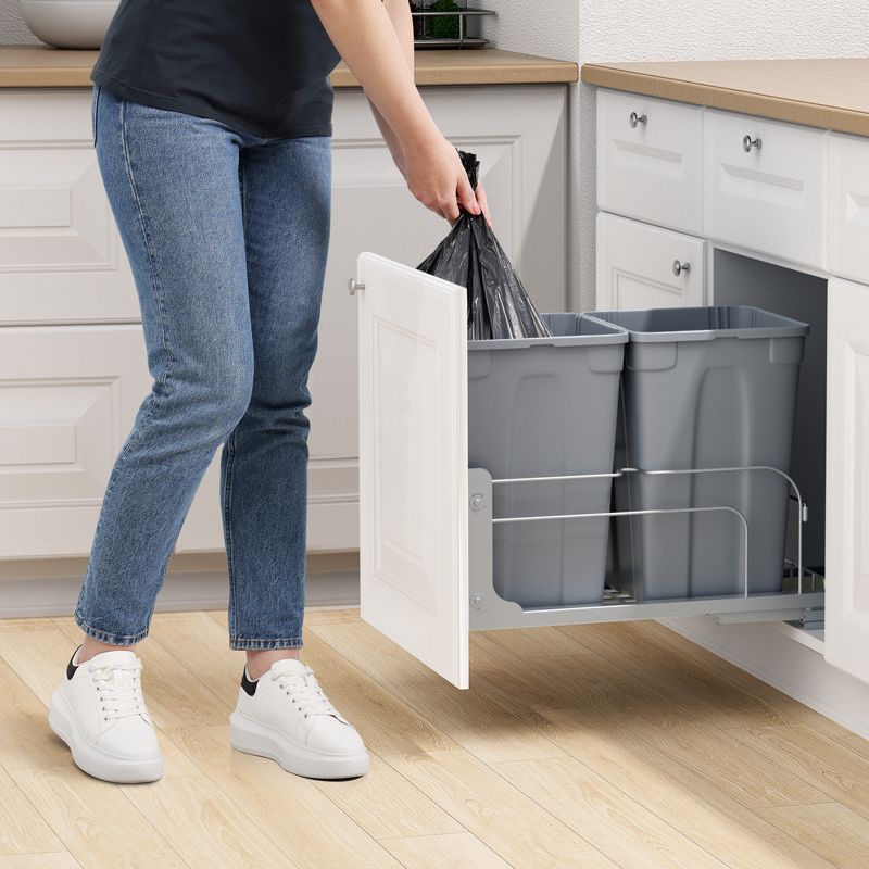VEVOR Pull-Out Trash Can, 27 QT x2 Double Under Mount Kitchen Waste Container, Heavy Duty Garbage Recycling Bin, Gray