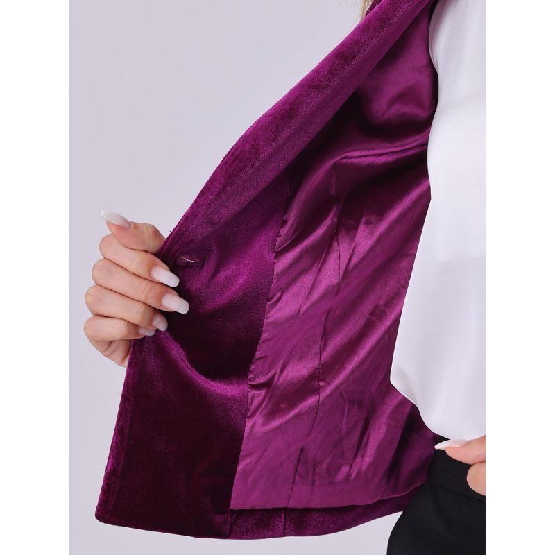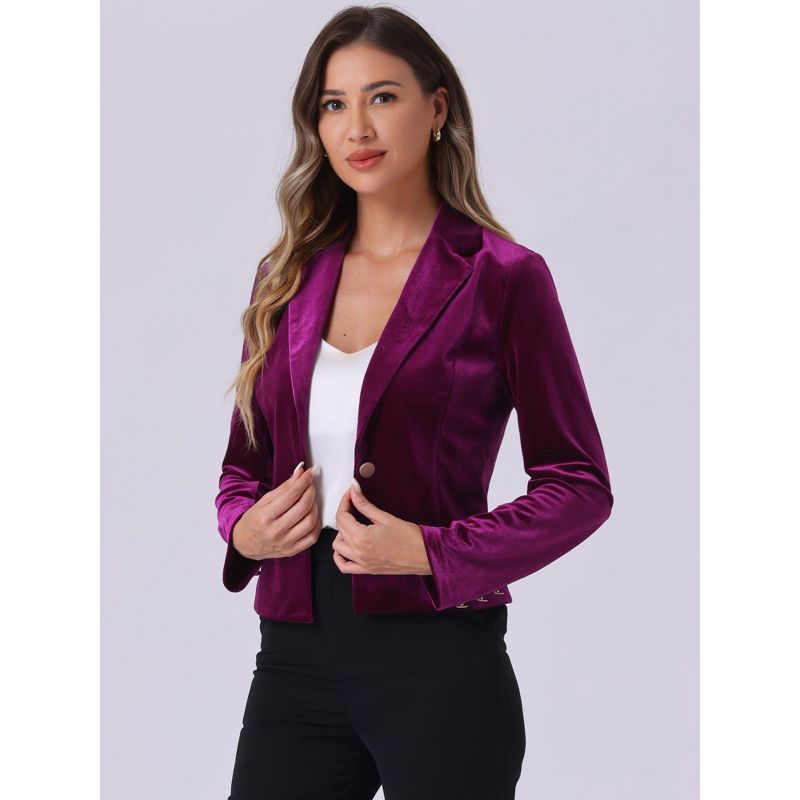 INSPIRE CHIC Women's 1 Button Lapel Collar Business Office Crop Suit Velvet Blazer Deep Purple Medium