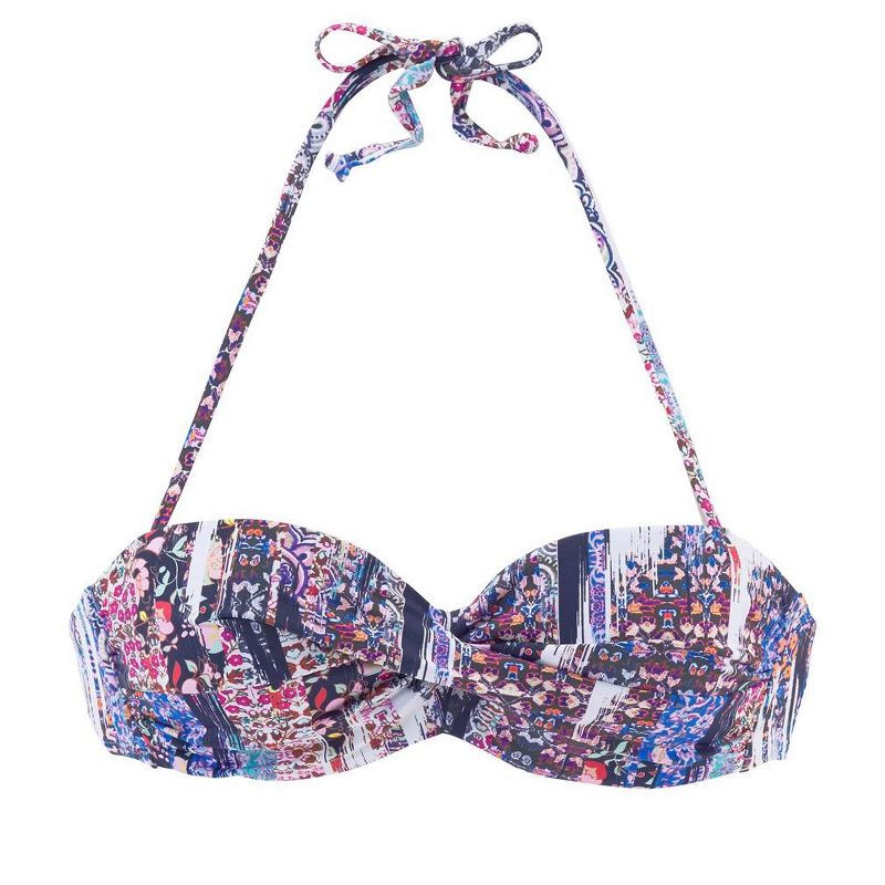 Women's Wire Bandeau Bikini Swimsuit Top Bra Sizing - LASCANA - Dark Blue Multi Abstract 34B