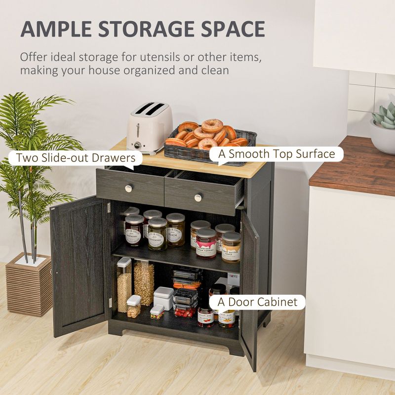 Kitchen Storage Cabinet, Sideboard Floor Cupboard with Solid Wood Top, Adjustable Shelf, and 2 Drawers
