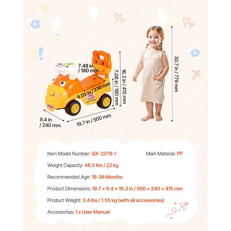 TopComfy Baby Walkers Toddler Push Ride On Car with Music, Under-Seat Storage, Foot-to-Floor Walker for 19-36 Months, Orange, 19.69"*10.63"*11.02"