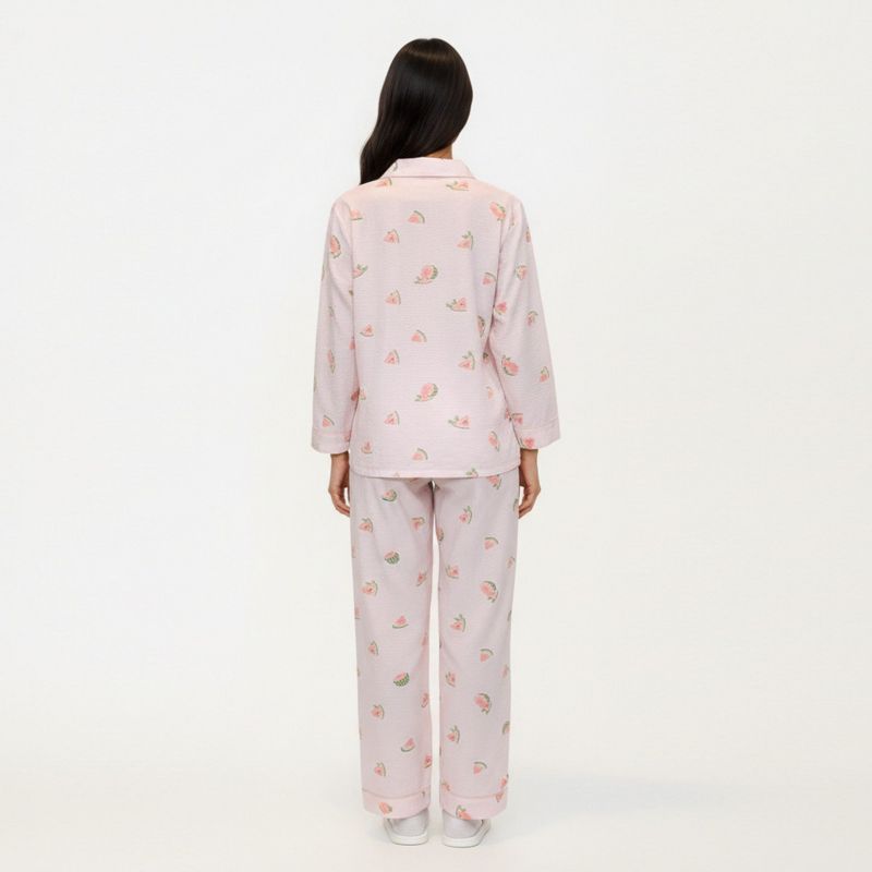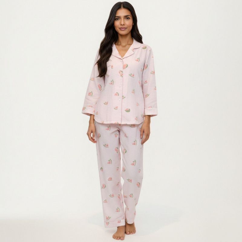Anna-Kaci Lounge Women's 2-Piece Set Heart Print Button Front Pajama Top with Relaxed Long Sleeves and Matching Elastic Waist Pants - Small, Pink