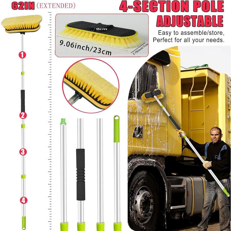 16-in-1 Car Wash Brush Kit with 62" Pole, Squeegee, Tire Brush & Detailing Tools for Complete Clean