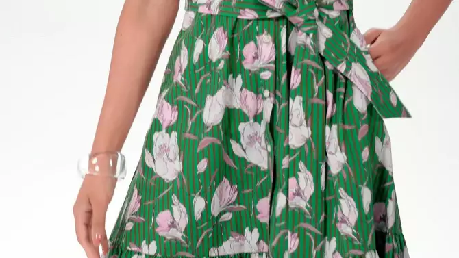 Women's Button-Down Short Sleeve Midi A-Line Dress - Universal Thread™ Blue Floral L