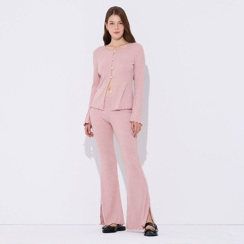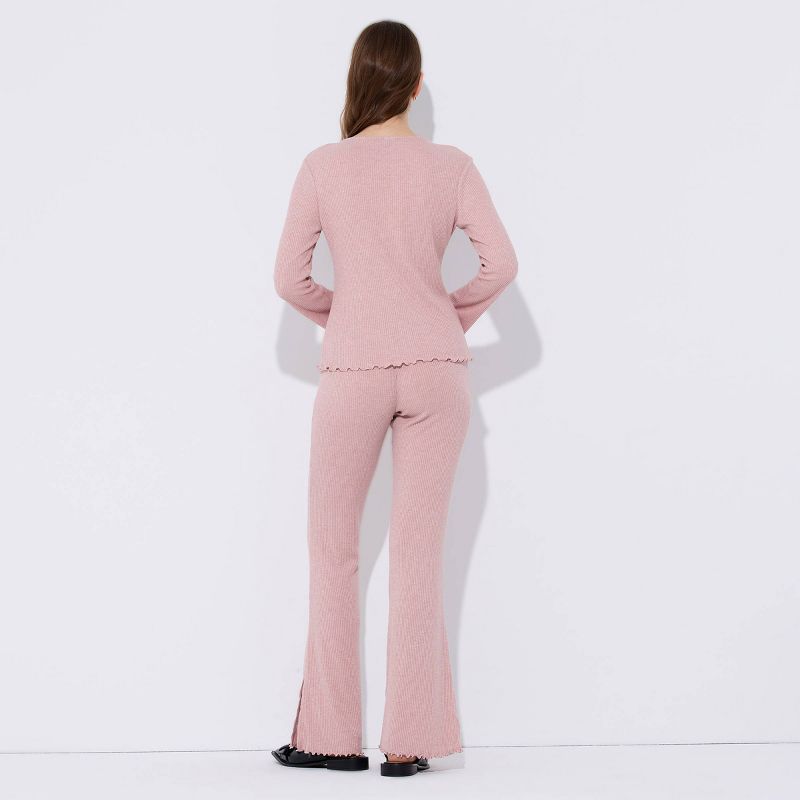Women's High-Rise Metallic Rib-Knit Flare Pull-On Pants - Wild Fable™ Pink L