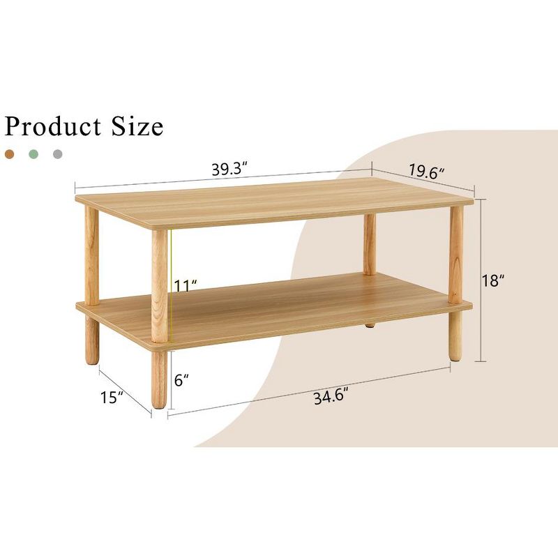 COWLOWN Natural Color Rectangular Center Table with Open Storage Shelf for Living Room Furniture Stable and Durable,Easy Assembly