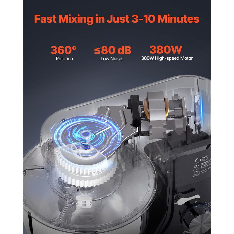 VEVOR Stand Mixer, 5QT Dough Mixer, 10+P Speeds Tilt-head Food Mixer, Kitchen Mixer with Stainless Steel Bowl, Dough Hook, Wire Whip, Black
