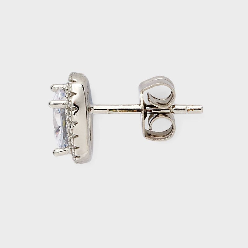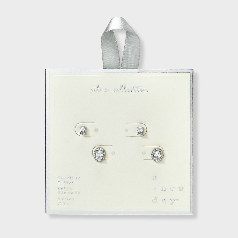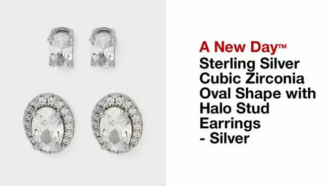 Sterling Silver Cubic Zirconia Oval Shape with Halo Stud Earrings - A New Day™ Silver