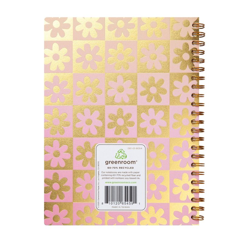 greenroom 6"x8" Spiral Notebook: Metallic Pattern Daisy Checkerboard