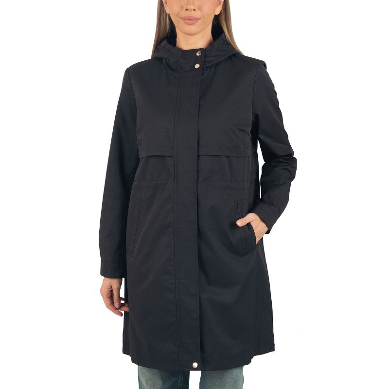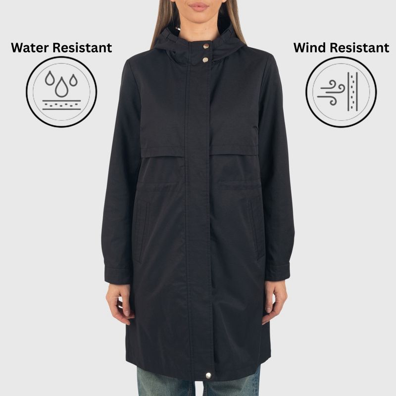 Alpine Swiss Tanya Womens Hooded Rain Jacket Long Raincoat Trench Coat Windbreaker Black Large
