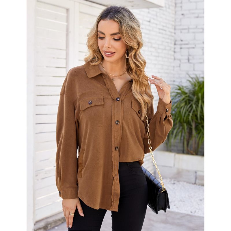 Womens Long Sleeve Jackets Button Down Jackets for Women With Pockets Khaki S