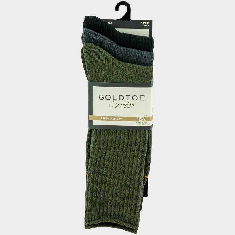 Goldtoe Signature Collection Men's Recycled Blend Rib Crew Socks 3pk - Black/Charcoal Gray/Olive Green 6-12.5