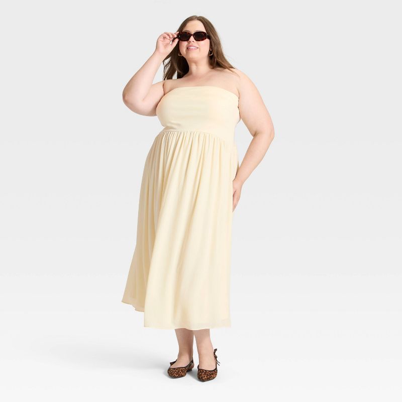 Women's Strapless Maxi Dress - A New Day™ Cream 1X