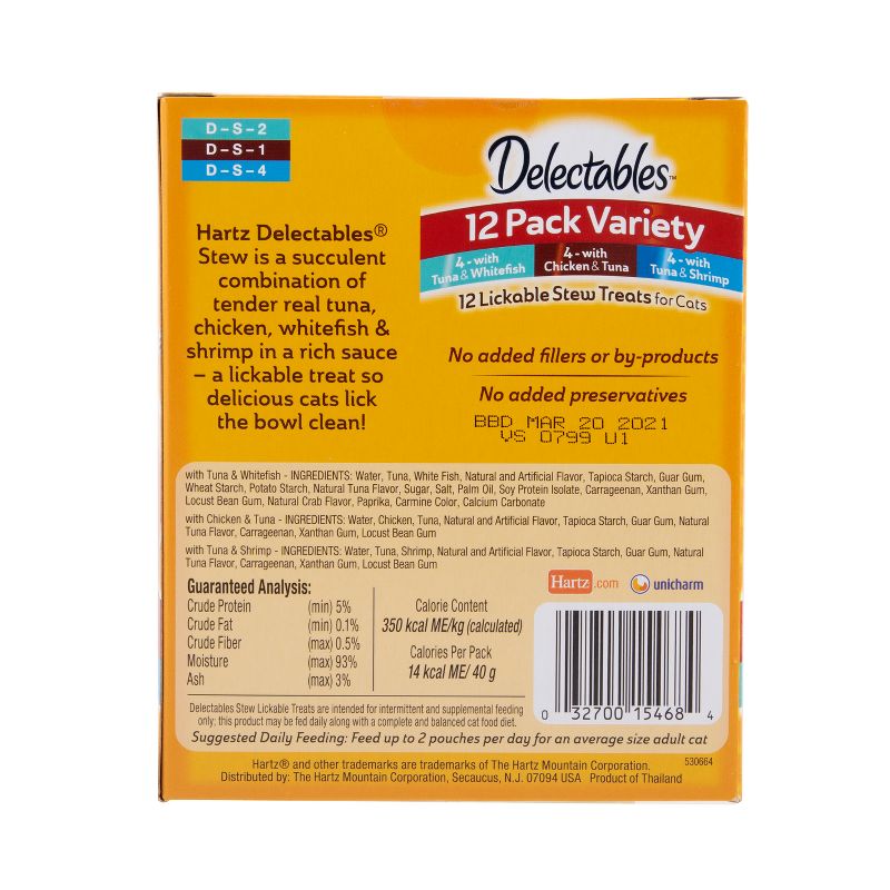 Hartz Delectables Stew Lickable Chicken, Tuna, Shrimp and Whitefish Flavor Cat Treats - 1.4oz/12ct Variety Pack