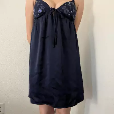 Women's Embellished Mini Babydoll Dress - Wild Fable™ Navy Blue M