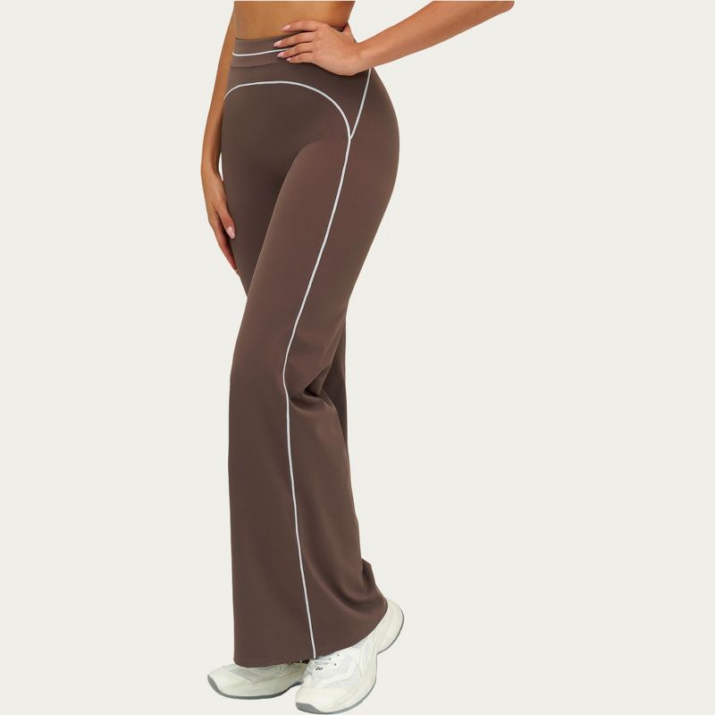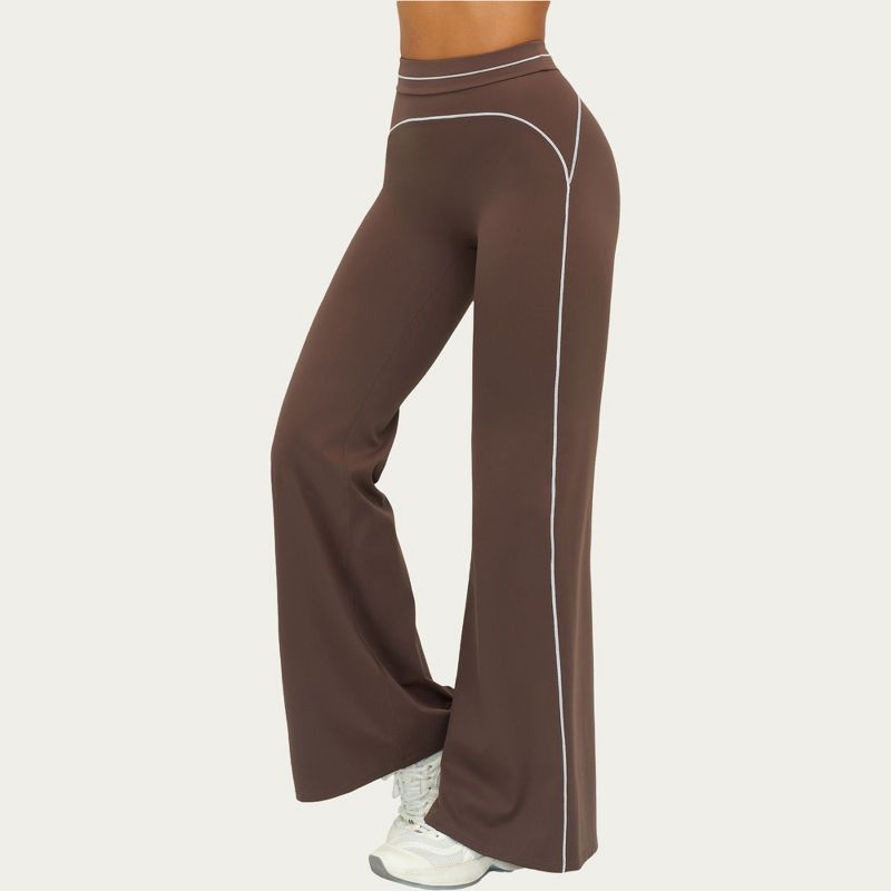 Anna-Kaci Active Women's High Waist Flare Leg Active Pants with Sculpting Fit and Contrast Seam Detailing - Medium, Brown
