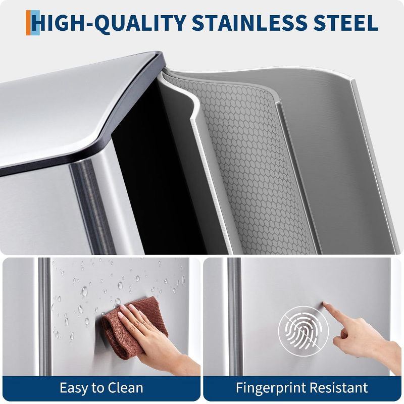 Kitchen Trash Can with Lid, 2 x 8 Gallon Stainless Steel Garbage Can with Recycle Bin, Dual Compartment Trash Bin with Independent Pedals, Silver