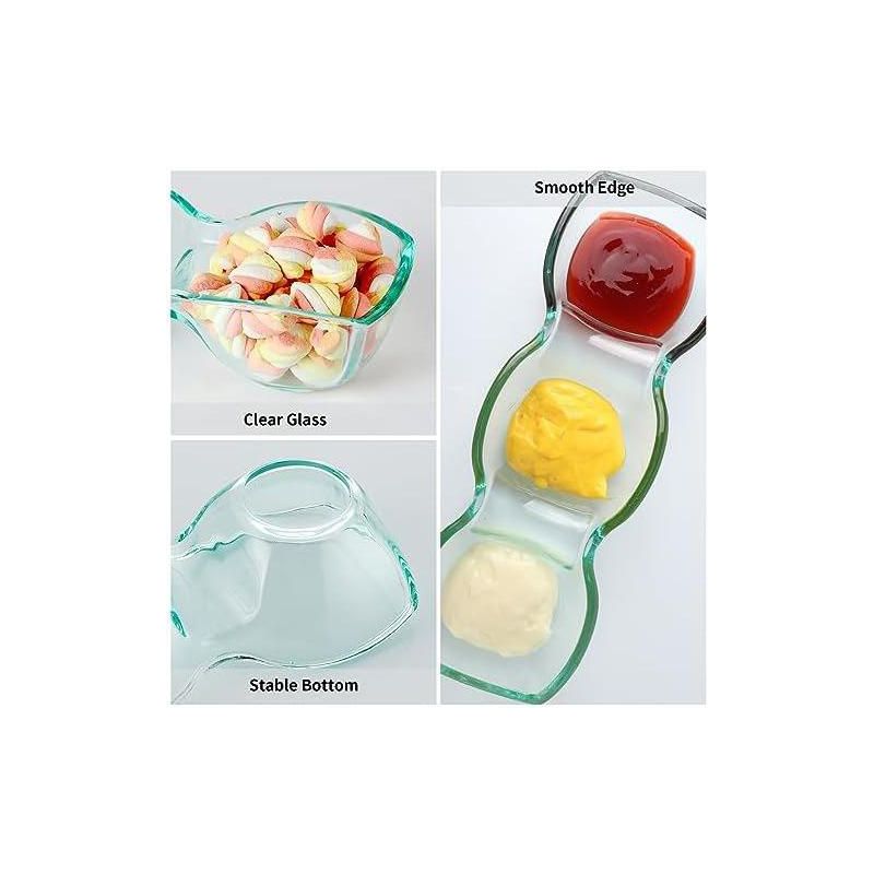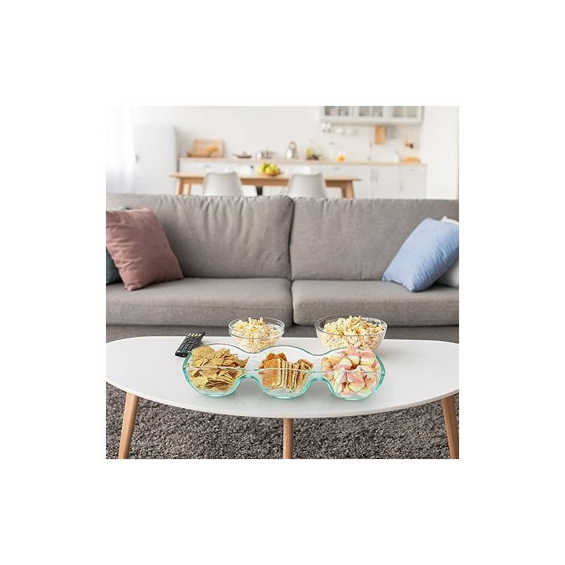 Aoibox Thick Glass Triple Dip Bowl, Large Divided Appetizer Serving Dish, 3-Compartment Snack Server for Entertaining, Party, Buffet, Event
