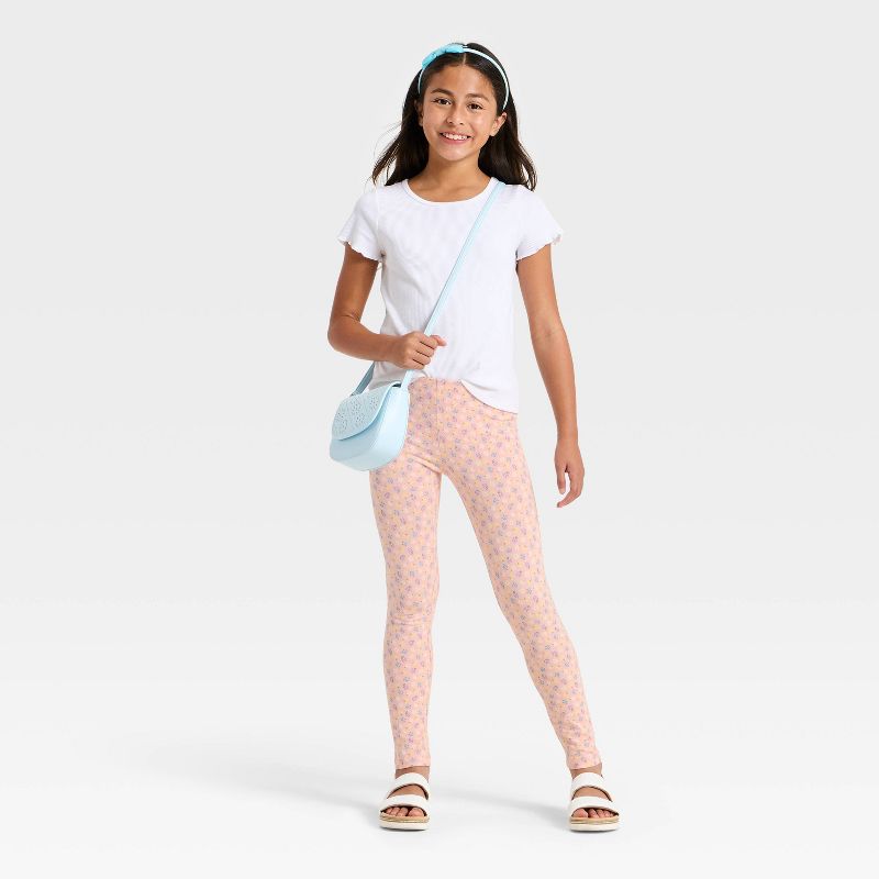 Girls' Floral Leggings - Cat & Jack™ Clay Pink M