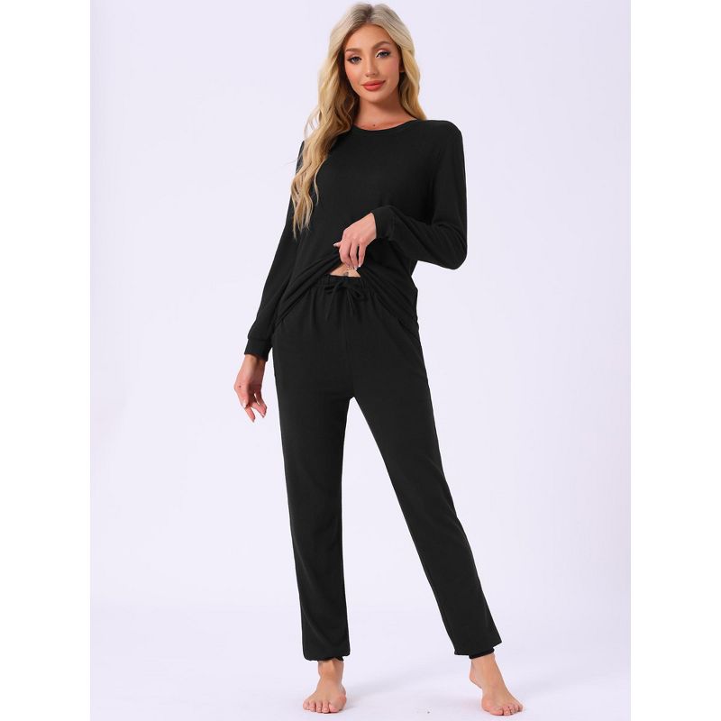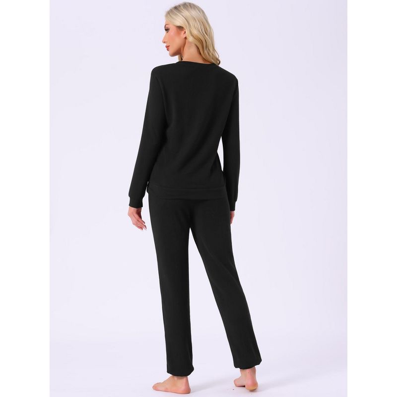 cheibear Women's Star Long Sleeve Printed Lounge Set Sweatshirt Jogger Pants 2 Pcs Pajama Sets Black X-Small