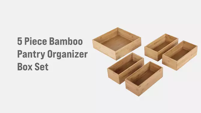 Seville Classics 5pc Bamboo Storage Bins Pantry Organizer Box Set: Multi-Compartment Kitchen Storage, Spot Clean, Brown