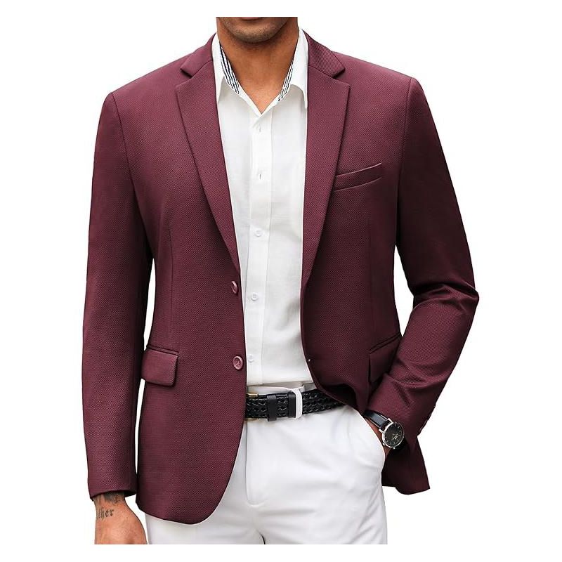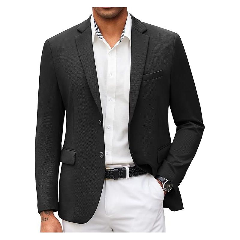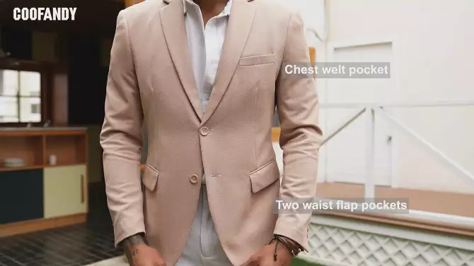 COOFANDY Men's V-Neck Slim Fit Blazer with Button Pockets Light Khaki S
