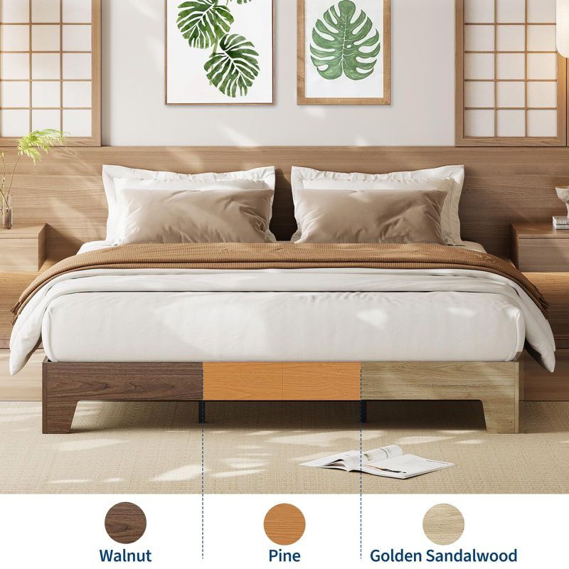 FULL Size Wood Platform Bed Frame, Farmhouse Style Bed with Noise-Free Slats, No Box Spring Needed, Nature Bedroom Furniture, Easy Assembly