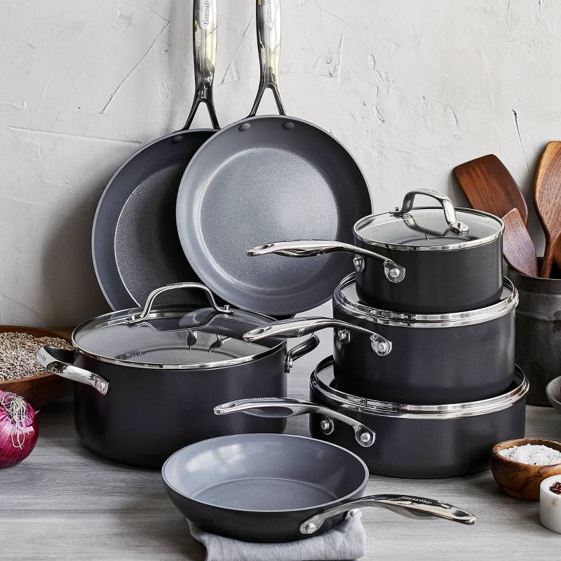 GreenPan Valencia Pro 11pc Ceramic Set with 3 Bonus Protectors Black